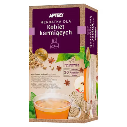 Die Inhaltsstoffe des APTEO Stilltees unterstützen die Aktivität der Milchdrüsen und fördern die Milchproduktion während der Stillzeit (Anisfrucht, Fenchelfrucht, Kümmelfrucht).